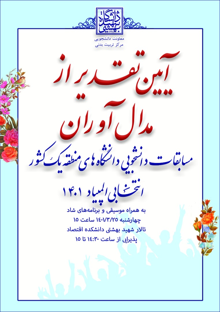صفحه اصلی آیین تجلیل از قهرمانان و مدال آوران ورزشی دانشگاه شهید بهشتی 33692 بازدید print share تالار ابوریحان مرکز همایش های بین المللی دانشگاه شهید بهشتی در شب عید سعید غدیر خم با حضور ریاست...