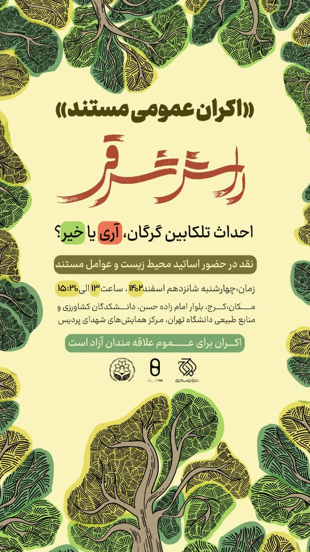 در راستای بهبود و کمک به وضعیت محیط زیست جنگل های هیرکانی و نجات محیط زیست گرگان، اکران عمومی مستند "راش شرقی" در دانشکدگان کشاورزی و منابع طبیعی دانشگاه تهران برگزار خواهد شد.